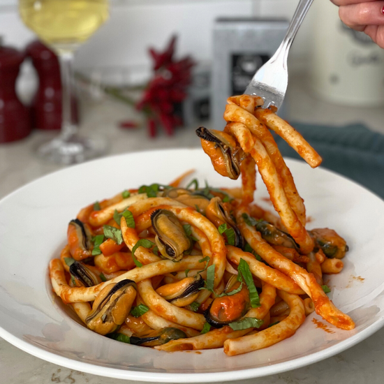 Pasta mit Miesmuscheln in einer pikanten Tomatensauce ist ein wahrer Genuss. Es ist schnell zubereitet, super elegant und schmeckt einfach fantastisch. Es ist das perfekte Gericht für ein Abendessen in der Woche oder für ein gemütliches Treffen mit einem Glas Wein.